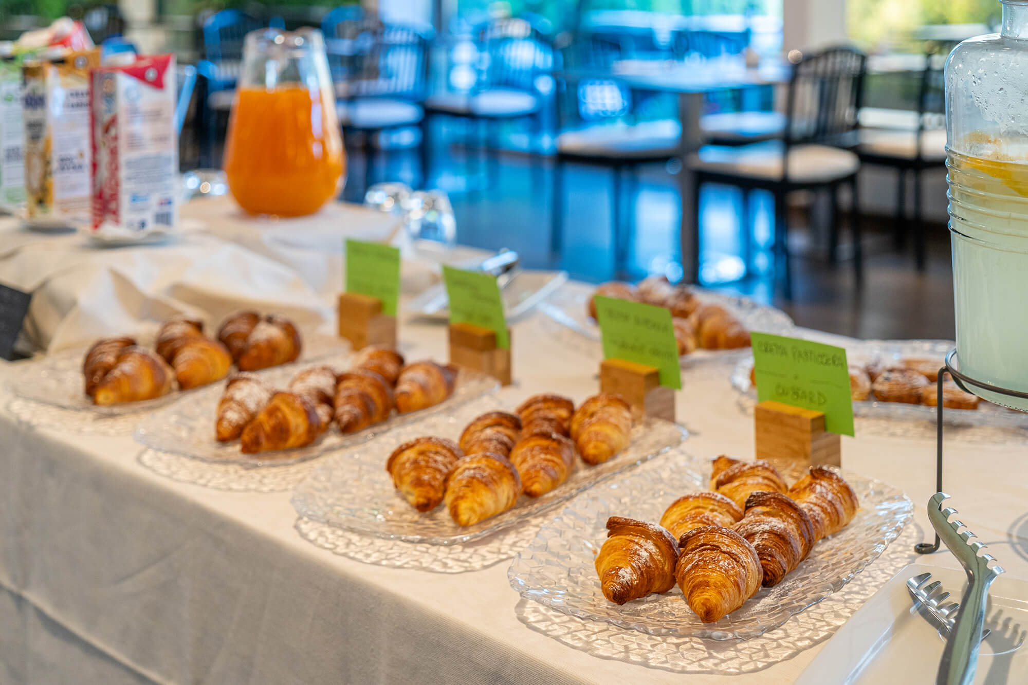 Am Morgen wird das Aufwachen im Hotel Désirée zu einem Ritual reiner Lust. Es ist eine sinnliche Reise mit Aufmerksamkeit für jedes Detail: von den gesunden Vorschlägen , den Tag mit Energie zu beginnen, bis hin zur exzellenten Auswahl lokaler Produkte, die die authentischen Aromen von Garda erzählen. Zwischen duftenden süßen Sorten und raffinierten herzhaften Optionen ist jeder Geschmack eine Hommage an die Qualität, die man langsam genießen kann, während das Morgenlicht beginnt, sich auf das Wasser des Sees zu spiegeln.